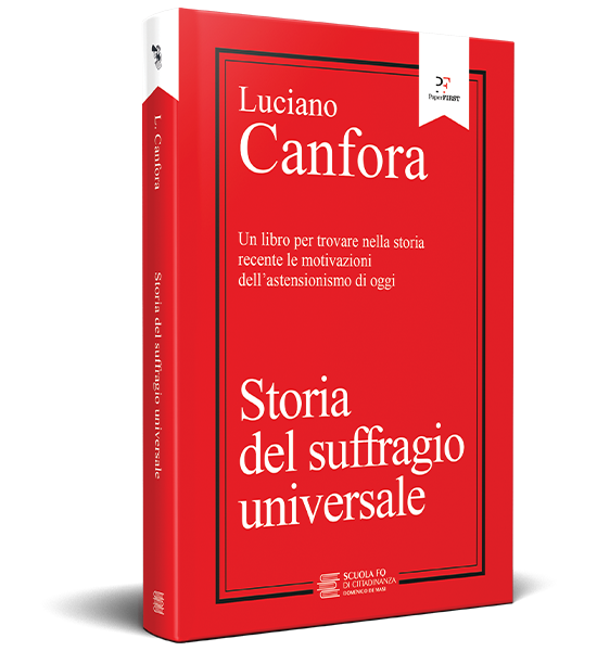 L’impeccabile ragionamento dello storico Luciano Canfora rivela che l’istanza del suffragio universale raggiunge il suo apice quando entra in scena il proletariato, pronto a rivendicare un ruolo attivo nella vita democratica accanto ad «adeguate formazioni politiche con programmi contrapposti nei quali gli elettori credevano e per i quali andavano a votare, consapevoli di esprimere una scelta concreta».